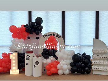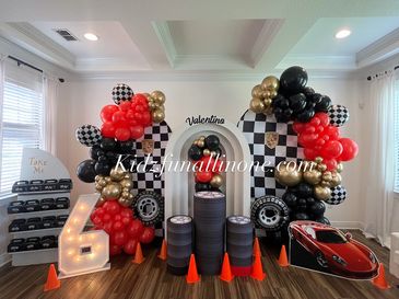 Larger Backdrop, Larger Balloon Decor, Cake Table(s) Cake Stand(s) Table Decor,Themed/Number Props, Themed Goodie boxes.